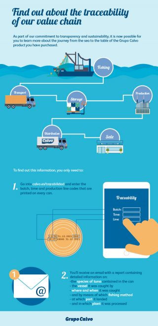 The traceability system is currently available for tuna products of the Calvo and Nostromo brands manufactured at the group’s plant in Carballo (Spain) and is easily accessible through the websites for each brand (Calvo Traceability; Nostromo Traceability). The rest of the products in our portfolio will be progressively integrated into this food traceability system.